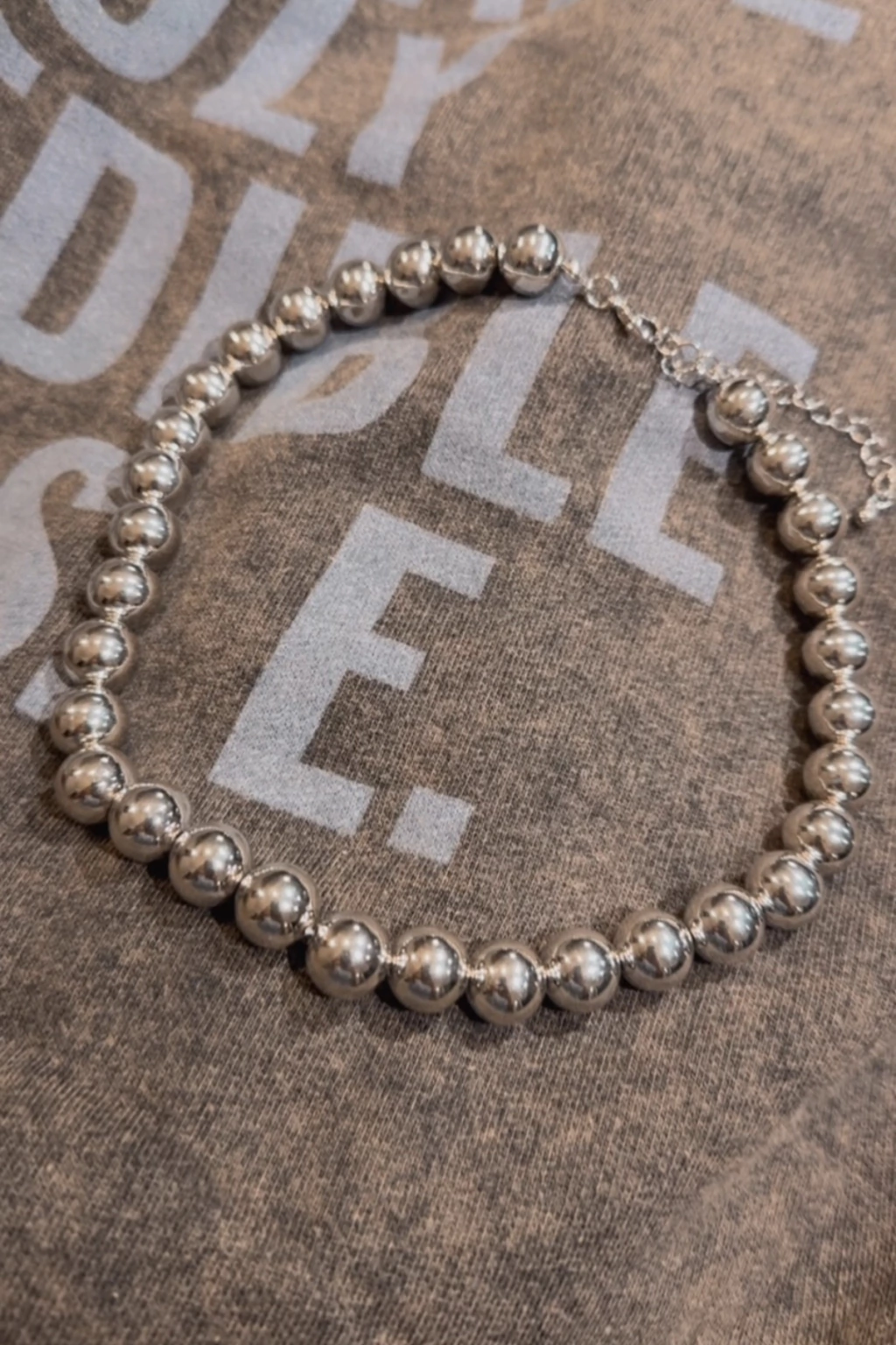 Collar bolas plateado, con cierre cadena para regular. Super rock y con toda la onda ✌️. Ideal para armar look con los basicos de ENSIMISMA.