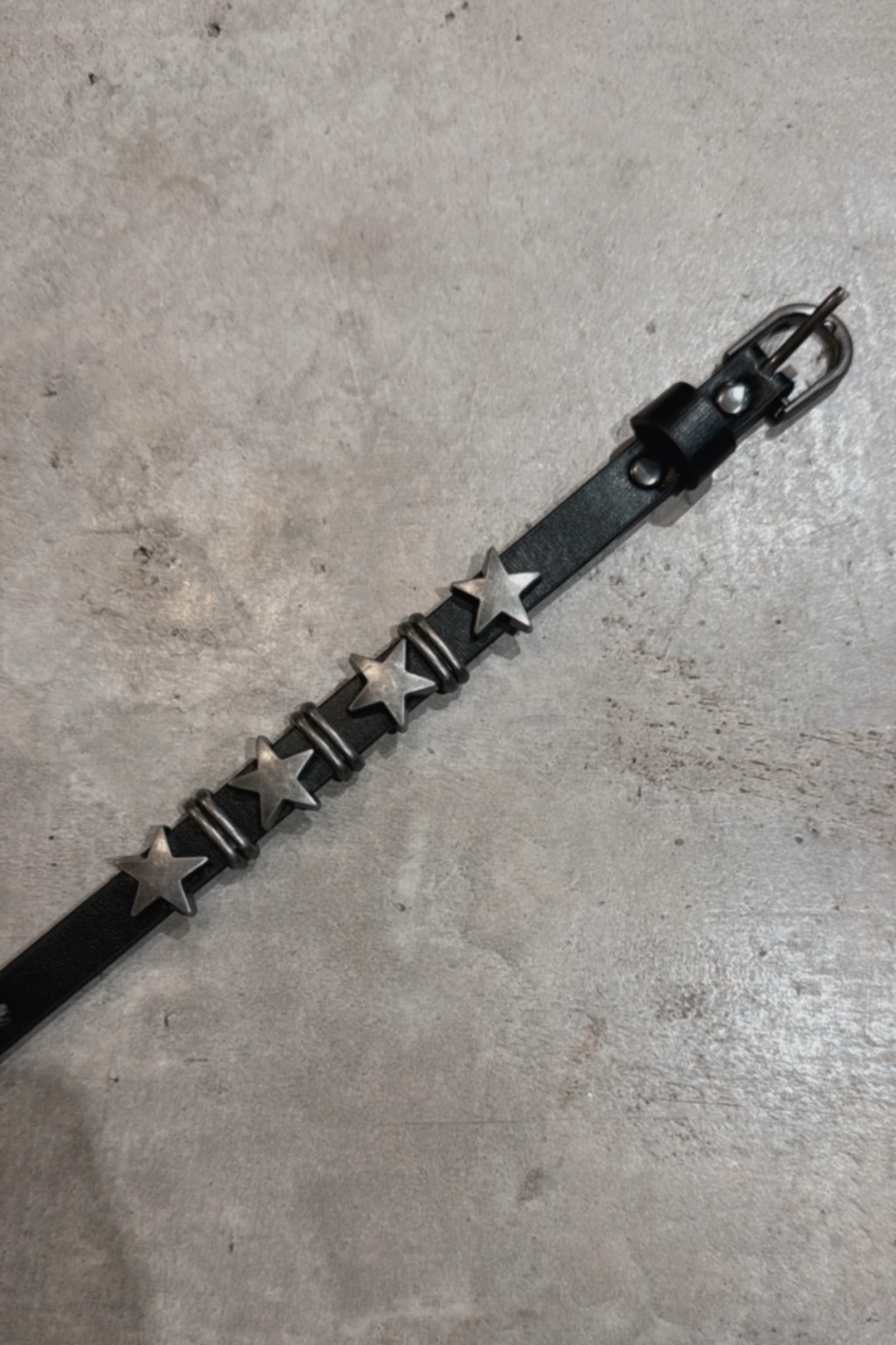 Pulsera con pasacinto de ecocuero, con tachas de estrellas. Super rock y con toda la onda ✌️. Ideal para armar look con los basicos de ENSIMISMA.