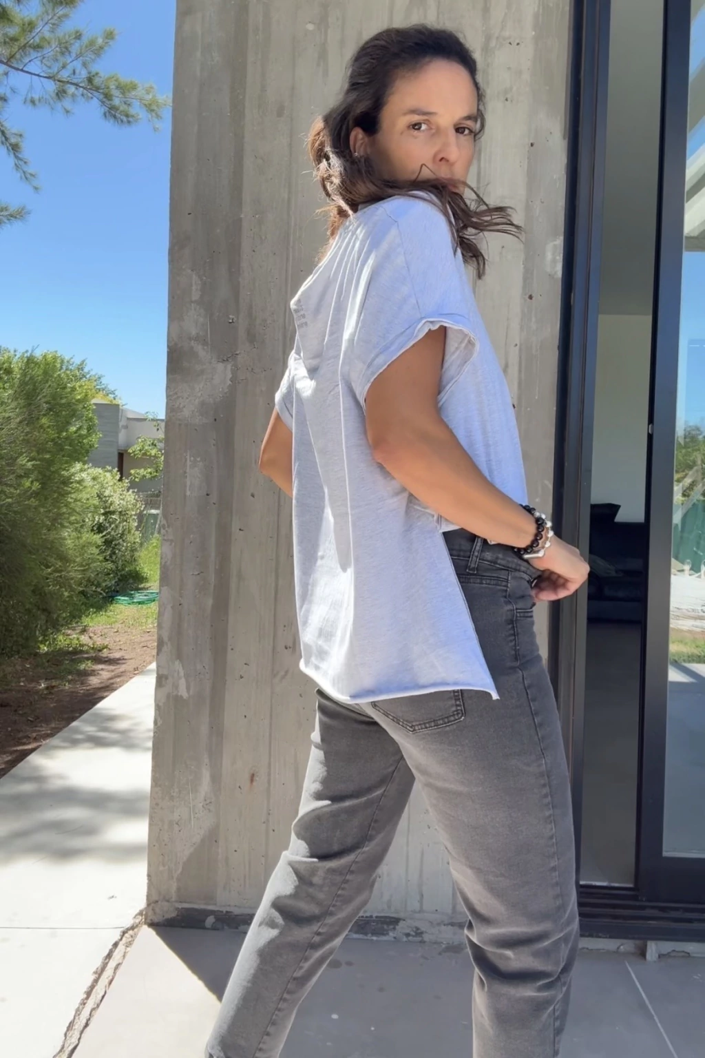 PACK de 3 remeras, gris, blanca y negra, en jersey de algodon 100%. Con aberturas a los costados. Totalmente lisas, detalle de estampa en la espalda debajo del cuello. Toda la onda estas remeras. Tus básicos E. Ahora en pack.