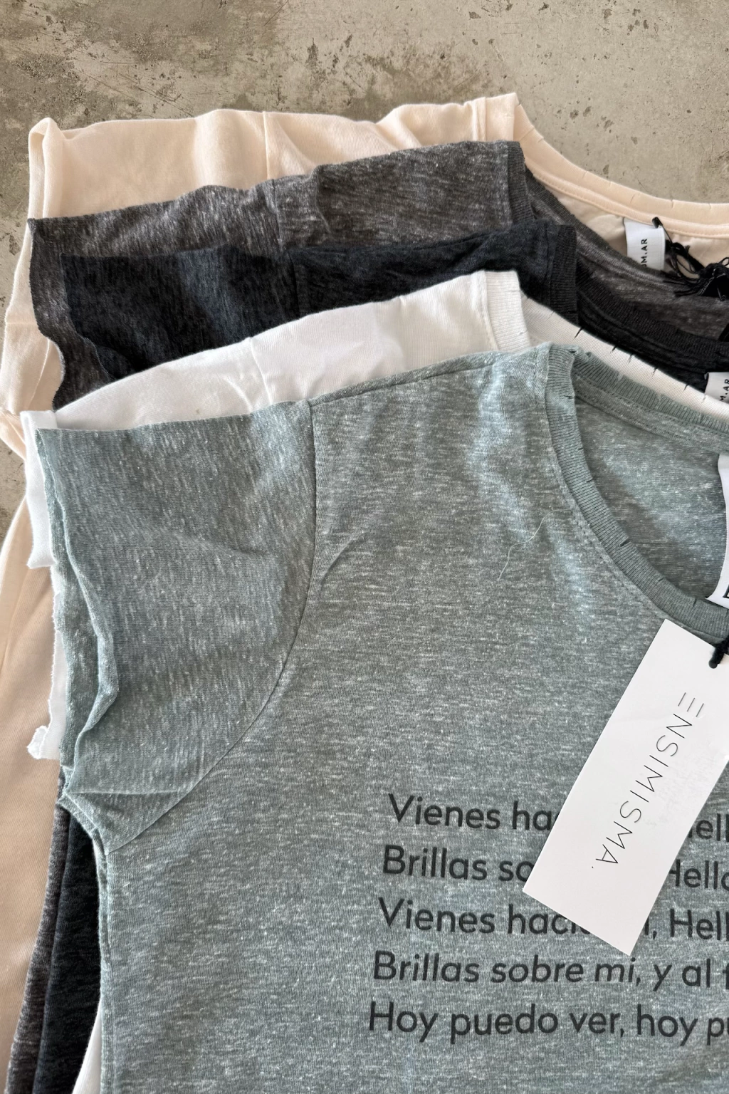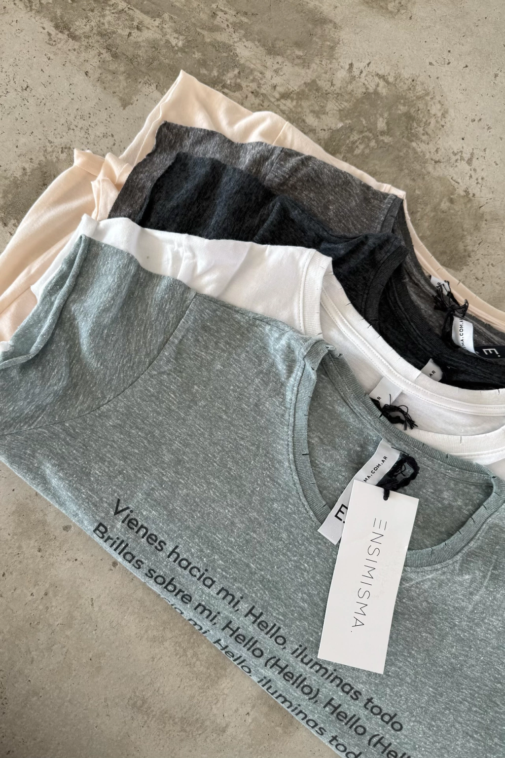 Remera en jersey de algodon, con estampa en el delantero. Toda la onda esta remera. Cuello redondo con cortes, mangas y ruedo sin terminacion. Viene en pack de 5 remes. Basicos siempre. Modo de uso COMODIN.