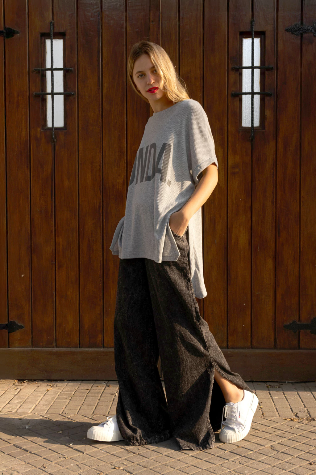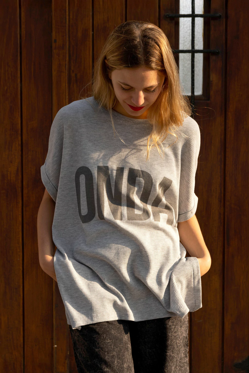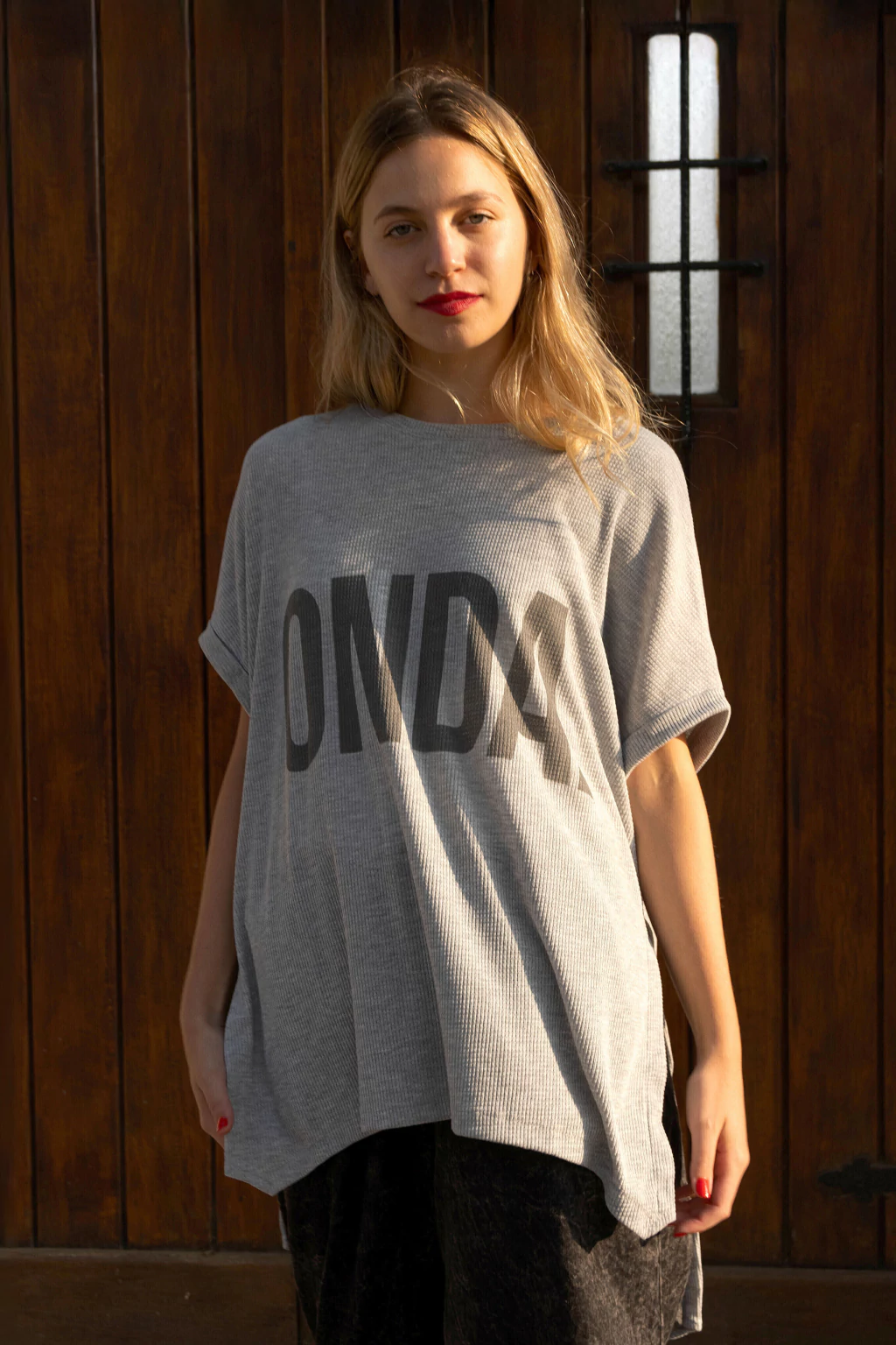 Remeron en tela wafle o panal, con estampa ONDA. Tiene aberturas a los costados. Toda la onda este remeron. Amplio, comodo, largo y por sobre todo canchero.