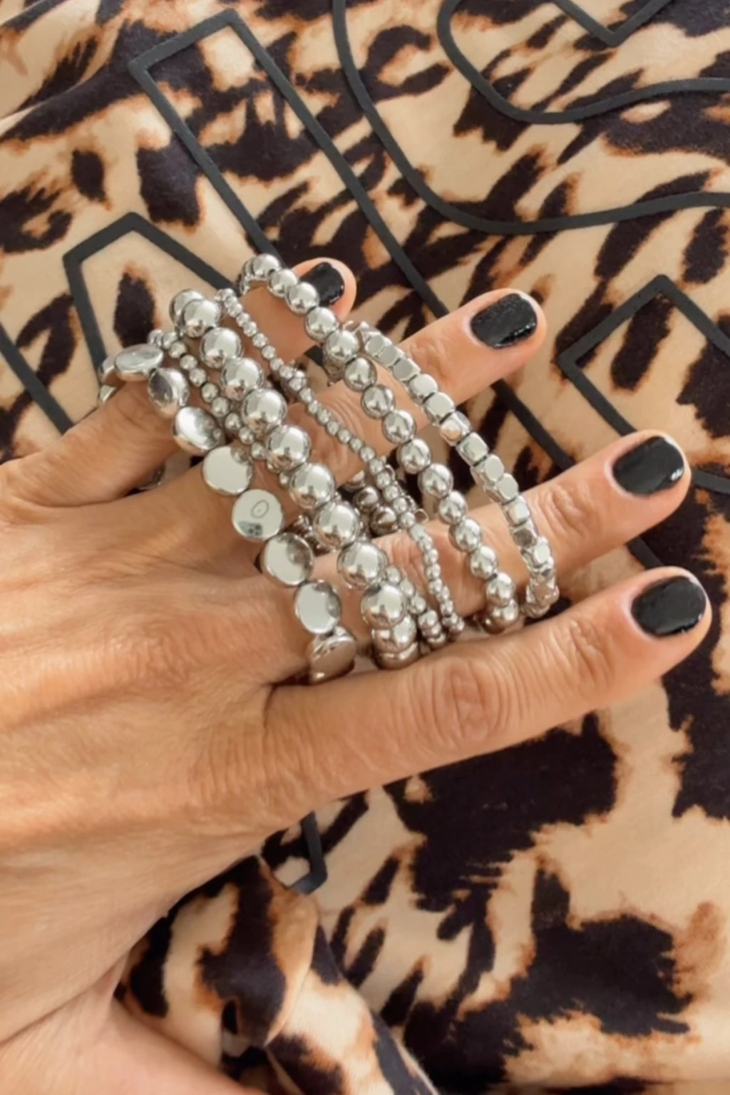 Set de 6 pulseras elastizadas plateadas.⛓️🔗⛓️💥. Divina para lookear los basicos E.