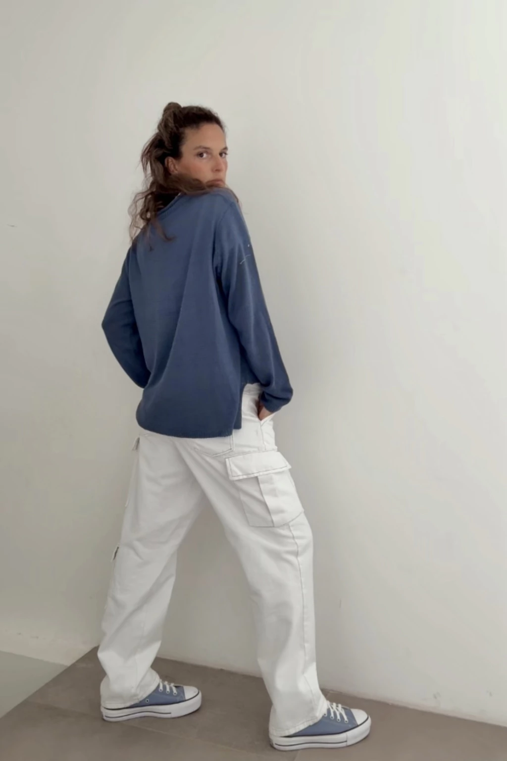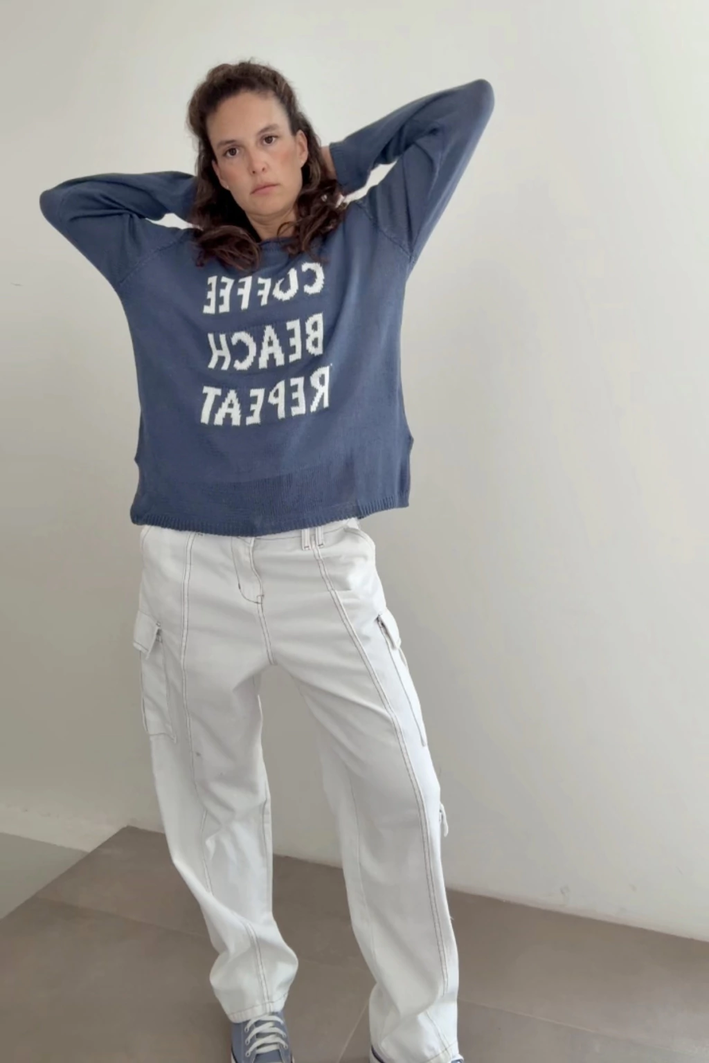 Jersey de punto. Cuello redondo, abertura laterales. Tejido liviano. Ideal verano, playa, vacaciones. Tu items de temporada.