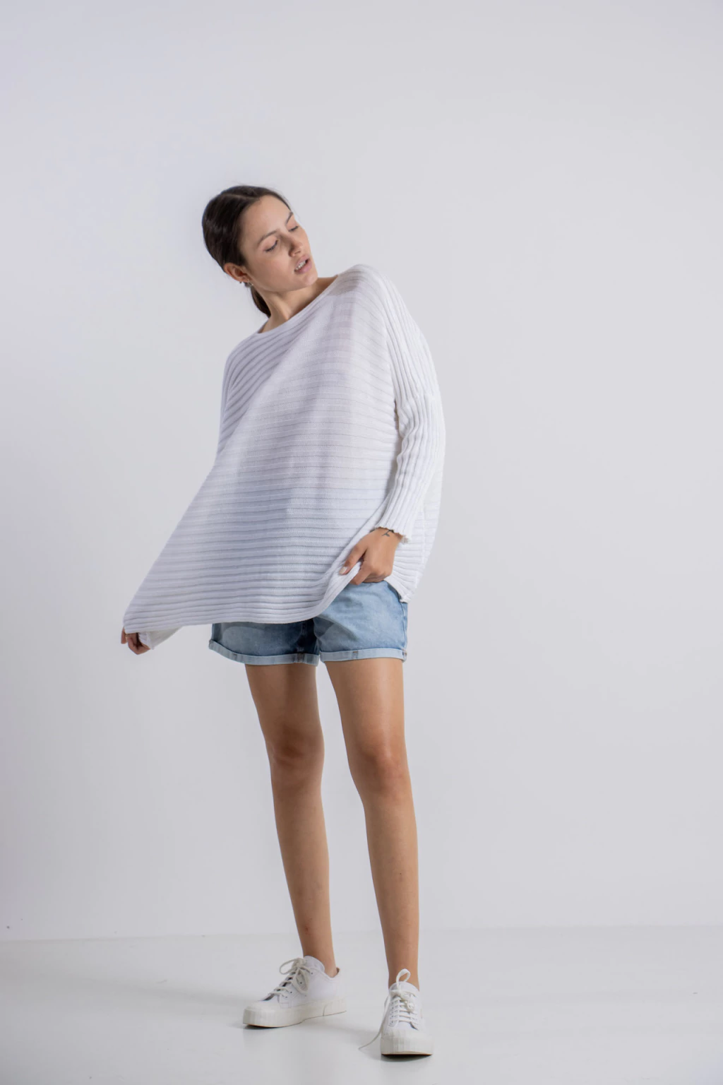 Sweater en 100% algodon. Tejido canelon en forma horizonal. Comodo e ideal para superponer con otras prendas por su forma tipo ponchito. Tambien podes usarlo solo como remeron. NO te puede faltar este basico atemporal que es para usar tod el año 🙌