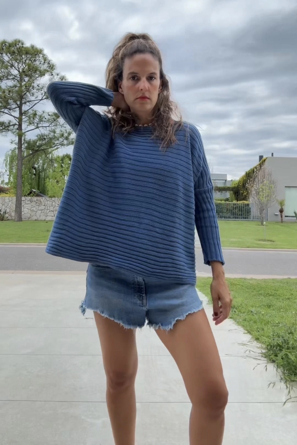 Sweater en 100% algodon. Tejido canelon en forma horizonal. Abrigado, comodo e ideal para superponer con otras prendas por su forma tipo ponchito. Tambien podes usarlo solo como remeron. NO te puede faltar este basico atemporal que es para usar tod el año 🙌