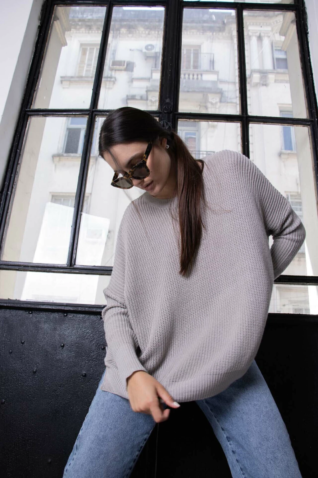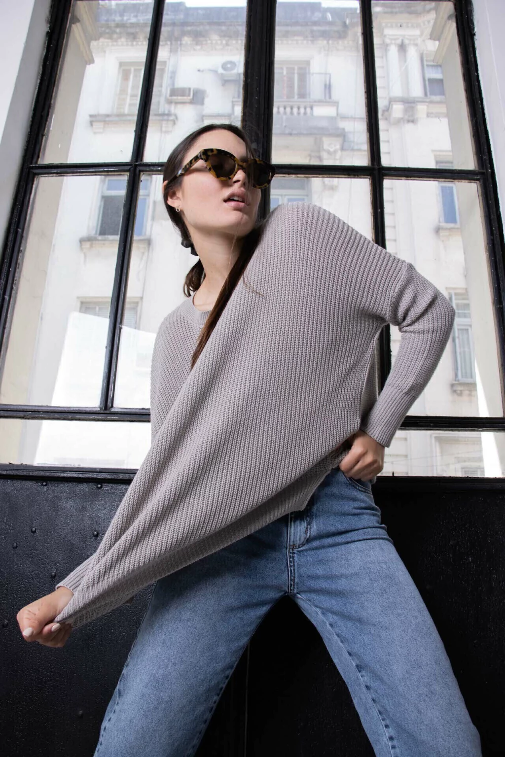 Sweater tejido en algodon aurea. Tiene detalle de puño, cintura y pequeñas aberturas en los costados. Tambien tiene una caida tremenda por el hilado premium que elgimos para confeccionarlo. Un basico que no te puede faltar. Este sweater es comodo, amplio, simple y con mucha onda. Ideal para usar todo el año. Comodin para los dias frescos.