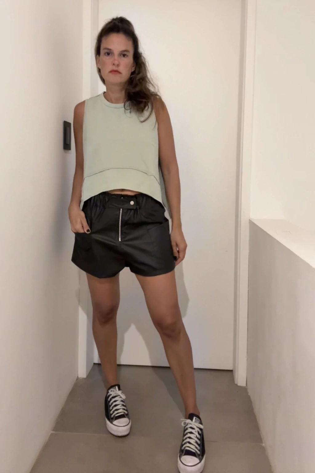 Top en jersey de algodon, lavado. Asimetríco, con cuello redondo. Prenda comoda y relajada. Toda la onda este top.